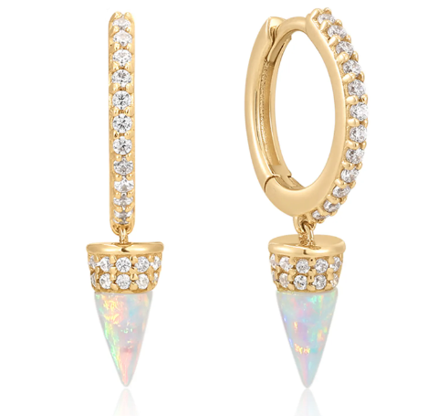 Introducing our Diamond Spike Earrings with Opal – a perfect blend of timeless sophistication and edgy charm. The sleek spike design, adorned with brilliant diamonds, adds a contemporary touch, while carefully selected opals cast a mesmerizing array of colors. Versatile enough for any occasion, these earrings effortlessly elevate your style, combining fine craftsmanship with unique elegance. Make a statement with this exceptional piece that seamlessly marries classic and modern aesthetics!