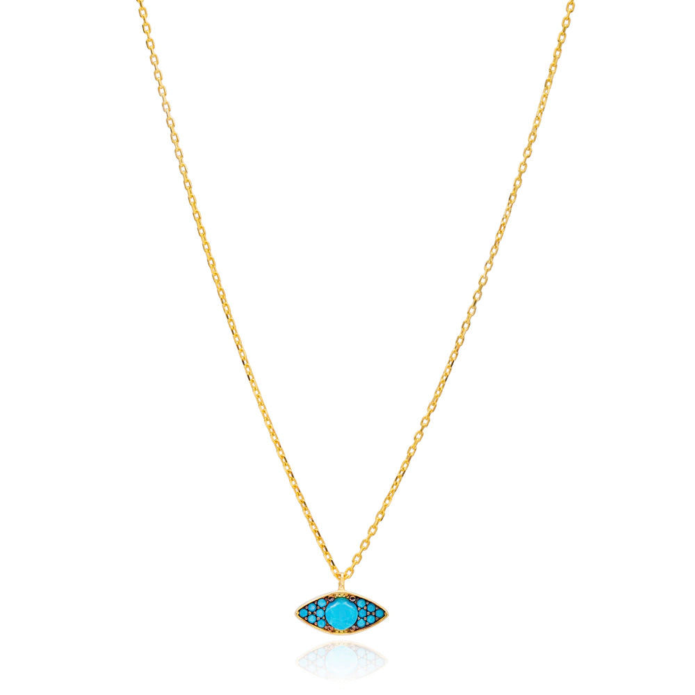 This Nano Turquoise Evil Eye Necklace features a delicate sterling silver base with a refined gold plating, highlighting a vibrant turquoise centerpiece. Designed with precision, it offers both aesthetic appeal and symbolic protection, making it an elegant accessory that combines craftsmanship with meaningful style. Ideal for layering or wearing alone, this necklace adds a subtle yet distinctive touch to any collection.
